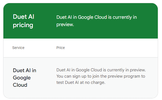 덧붙여 Duet AI는 기사 작성 시점에서는 프리뷰 단계이며, 무료로 테스트 가능합니다.