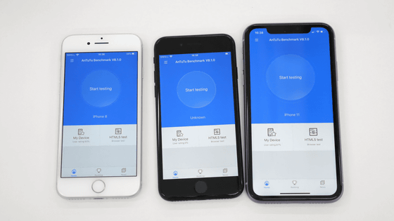 iPhone 8, 2세대 iPhone SE, iPhone 11로 Antutu Benchmark Ver8.1.0 동영상 렌더링을 비교한 결과 - YouTube