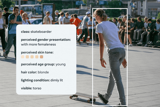 FACET를 이용하면, 「스케이트 보더라고 인식되는 비율은 남녀 간에 얼마나 다른가」라든지, 「피부색에 의해 인식율이 얼마나 달라지는가」 등에 대하여 모델을 테스트하는 것이 가능합니다.