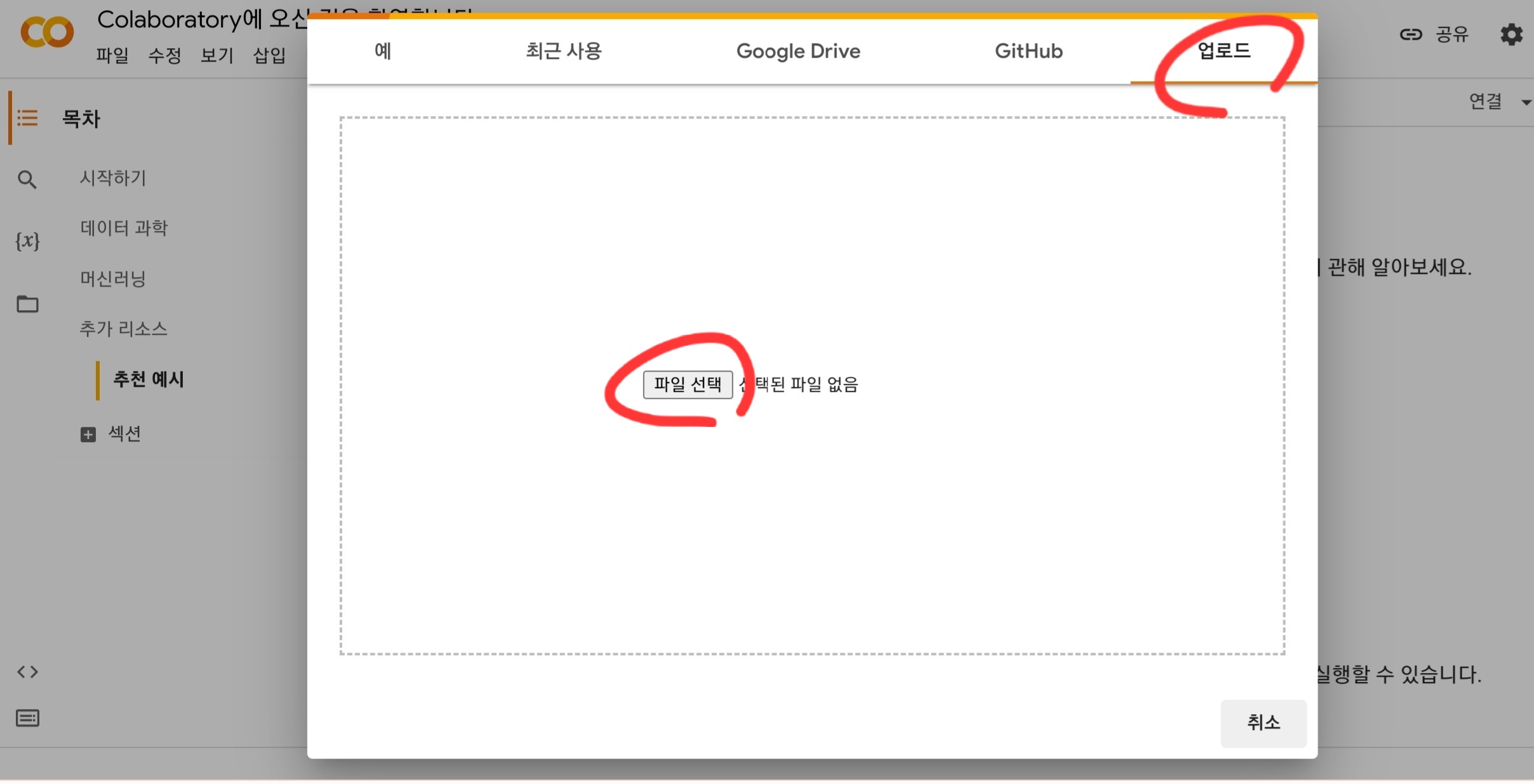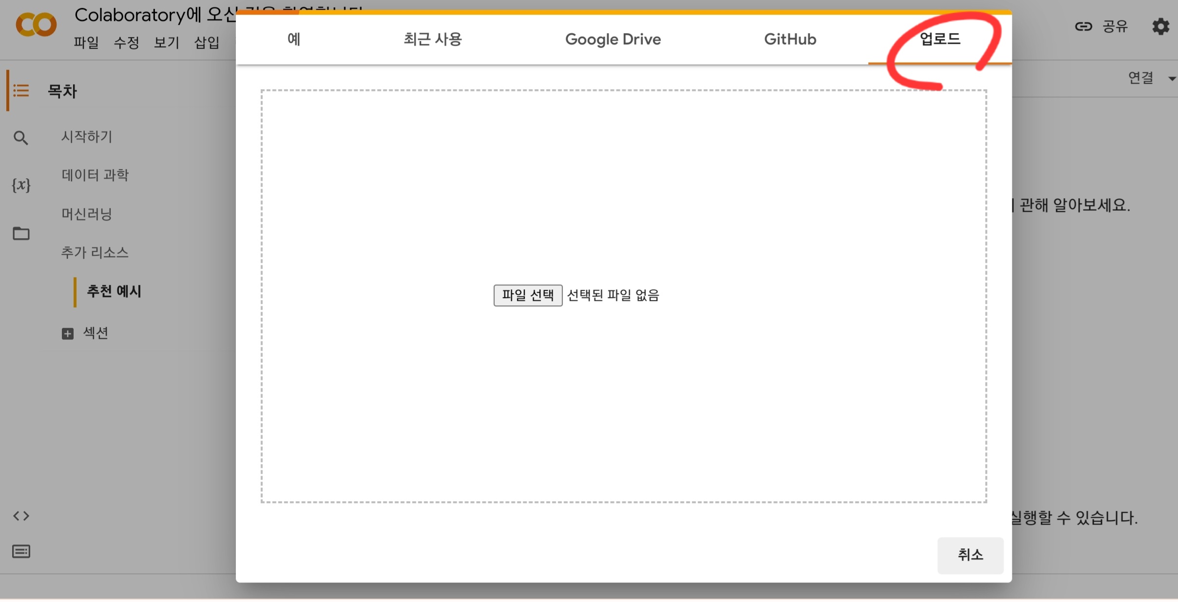 구글 계정에 로그인되어 있다면 아래의 창이 열리므로 업로드 탭을 선택합니다.