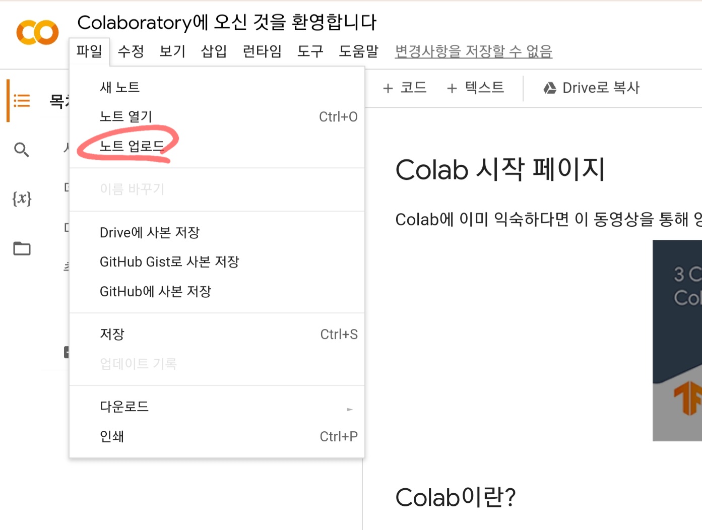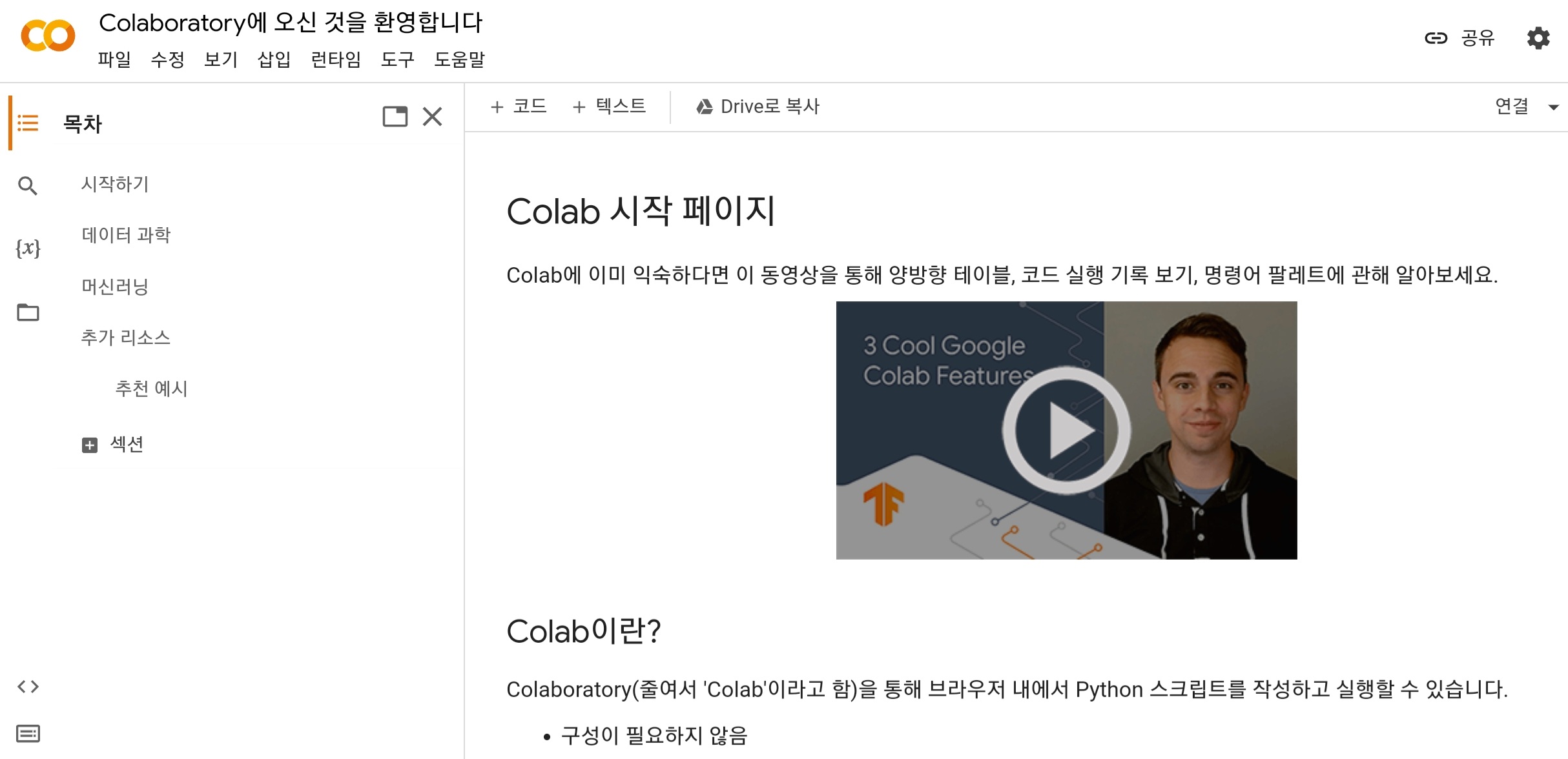 먼저 아래 URL에서 Google 코랩에 액세스 합니다.