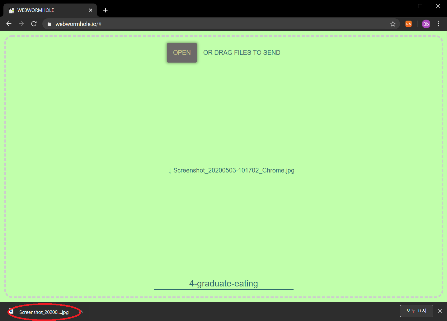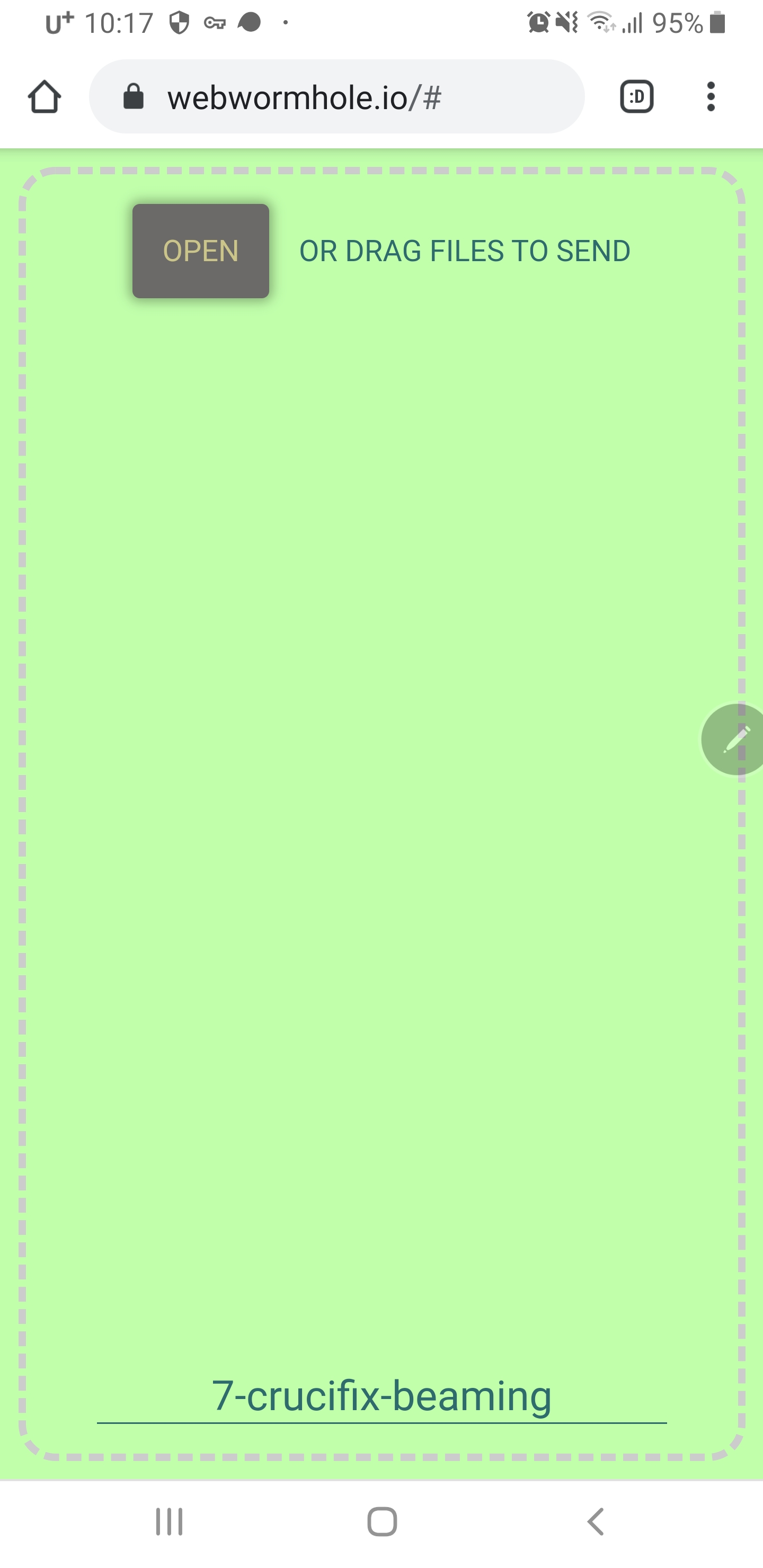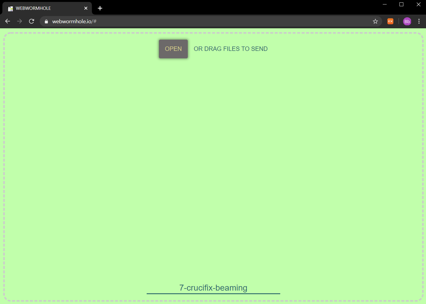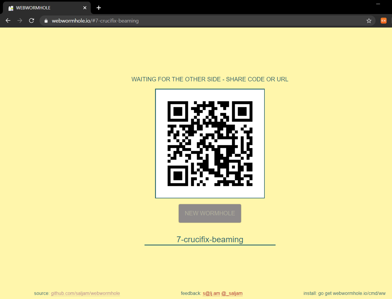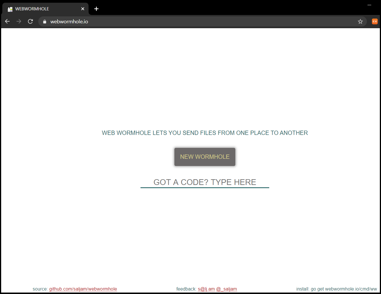 즉시 'WEB WORMHOLE'에 접속해 보시면 다음과 같은 화면이 표시됩니다. "NEW WORMHOLE"를 클릭하고 파일을 교환하기 위한 새로운 웜홀을 만듭니다.