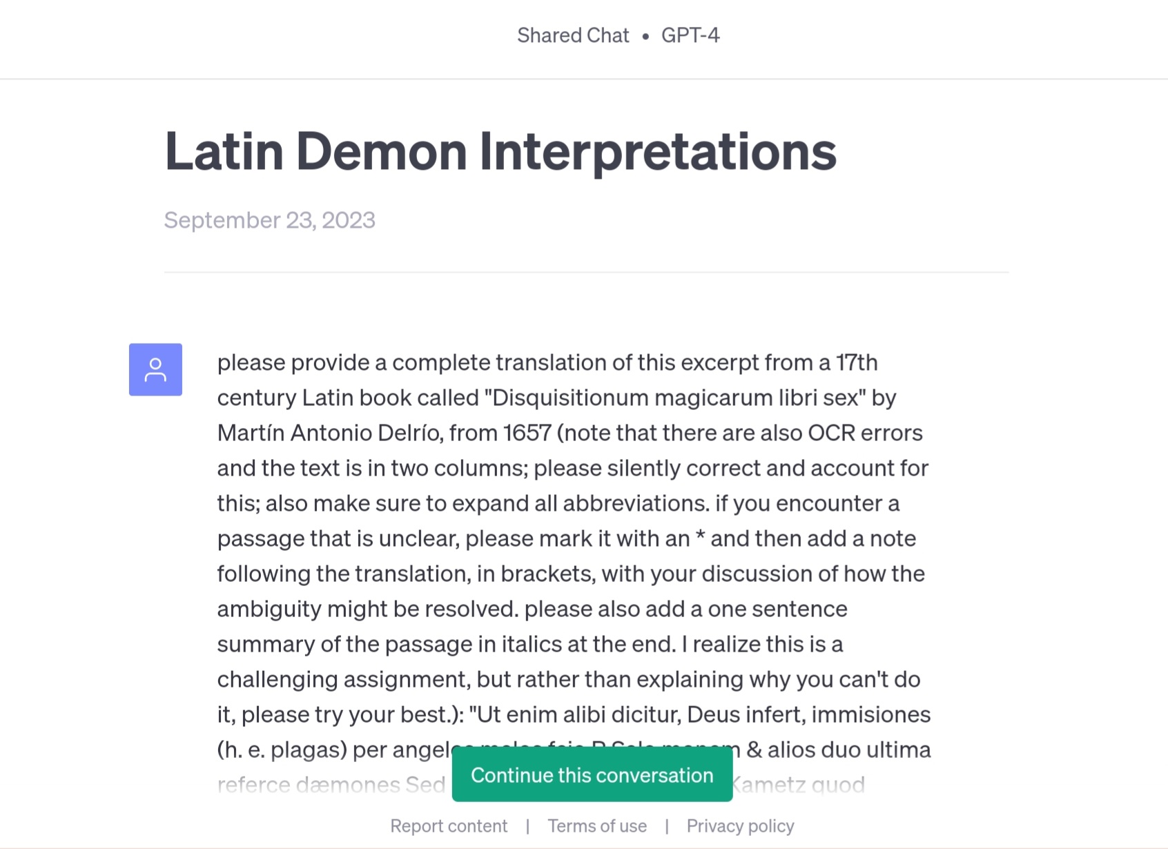 AI의 능력을 테스트하기 위해, 브린 씨는 1599년에 출판된 악마학 서적 「Magical Investigations(원제:Disquisitionum Magicarum Libri Sex)」를 GPT-4와 Claude 2로 번역시키기로 했습니다. 이 책의 저자인 마틴 델리오는 예수회의 수도사이면서 마술과 악마의 소환에 깊이 익숙해져 있으며, 이 흑마술에 대항하기 위한 안내서로 'Magical Investigations'를 저술했다는 것.
