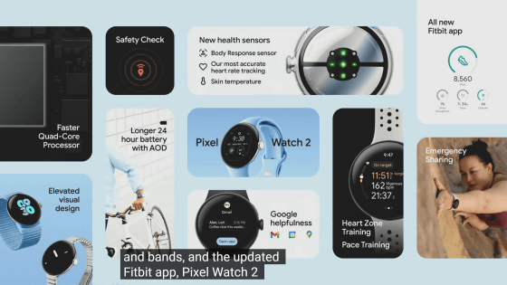 Pixel Watch 2에는 전 세대 Pixel Watch의 25배의 LED를 갖춘 심박수 센서가 탑재되어 있어, 개량된 AI 심박수 알고리즘과의 조합으로 정확한 심박수 기록이 가능하다는 것. 또한 Fitbit에 의한 스트레스 모니터링에도 대응했습니다. 또한 달리기 및 실외 사이클링을 포함한 7가지 활동의 운동 시작 및 중지를 자동으로 기록할 수 있습니다.