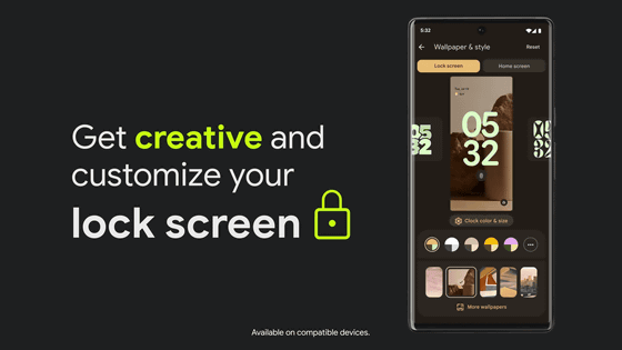 Android 14에서는 시계와 배경 화면에서 잠금 화면을 사용자 정의하고 잠금 화면에서 직접 패턴을 전환할 수 있습니다.