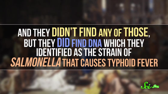 또한 유골에서 회수한 DNA에서 파라티푸스 열을 일으키는 살모넬라 균의 일종의 흔적이 발견되고 있으며, 이것이 원인이라는 견해도 있습니다. 현대에도 파라티푸스 열과 같은 살모넬라 균의 일종으로 인한 장티푸스에 의해 세계에서 연간 20만 명 이상이 목숨을 잃고 있습니다.