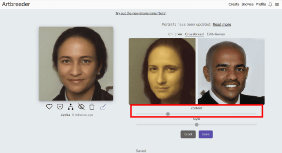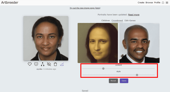 "Content"와 "Style"의 2개의 슬라이드가 있고 Content를 왼쪽으로 이동하면 왼쪽의 모나리자에 가까운 인물입니다...