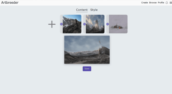 2 장의 이미지를 융합시키면 이런 느낌. 이것도 'Content'와 'Style'이라는 2개의 슬라이드로 조정할 수 있습니다.