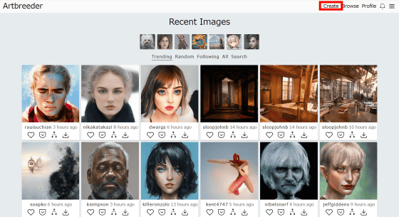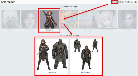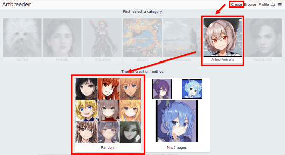 "Create"→ "Anime Portraits"→ "Random"을 해보면.