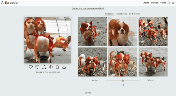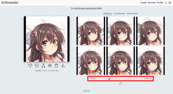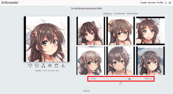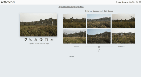 이미지 아래의 슬라이드에서 "Similar"(유사)와 "Different"(다른)를 조정할 수 있도록 되어 있으며, Similar로 하면 원본 이미지와 비슷한 변화가 나타납니다...