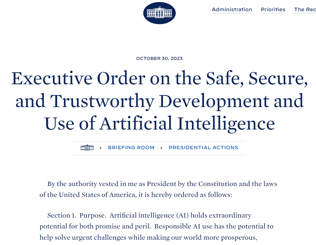 https://www.whitehouse.gov/briefing-room/presidential-actions/2023/10/30/executive-order-on-the-safe-secure-and-trustworthy-development-and-use-of-artificial-intelligence/