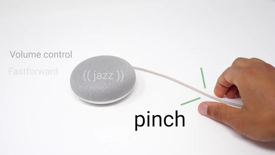전자제품 등을 손으로 조작하려면 일반적으로 버튼을 누르거나 터치 패널을 조작할 필요가 있습니다. 그러나 Google이 새롭게 개발한 'E섬유(E-Textile)'를 사용하면 스피커나 헤드폰의 케이블을 만져 음악을 재생하거나 케이블을 비틀어 음량을 조절하는 등의 쉽고 직관적인 조작을 할 수 있습니다.