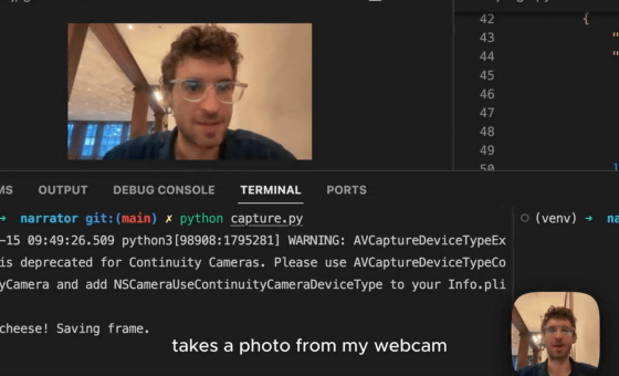 홀츠씨가 작성한 시스템은, 화상으로부터 텍스트를 생성하는 OpenAI의 GPT-4 Vision(GPT-4V)와, 음성 샘플로부터 "AI의 복제 음성"을 생성하는 ElevenLabs의 기술을 결합한 것입니다.