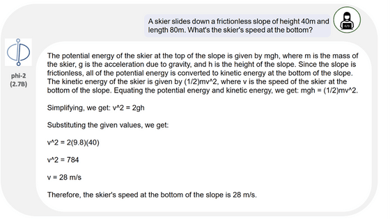 작은 모델에서 큰 모델에 필적하는 성능을 내기 위해 Microsoft는 교육 데이터와 방법에 중점을 두었습니다. 교육 데이터로서는 과학이나 일상생활, 심리 등의 상식・일반 지식을 가르치기 위한 데이터세트와, 교육적 가치나 콘텐츠의 품질에 근거해 신중하게 필터링한 웹의 데이터 세트를 사용했다는 것. 또한, 먼저 Phi-1.5를 트레이닝하고 그 지식을 Phi-2로 이전하는 방법을 이용함으로써 트레이닝의 수렴을 가속하면서 벤치마크 스코어를 향상하는 데 성공했습니다. 트레이닝 데이터의 양은 1.4조 토큰으로, 96개의 NVIDIA A100 GPU를 사용해 14일에 걸쳐 트레이닝을 실시했다고 합니다.