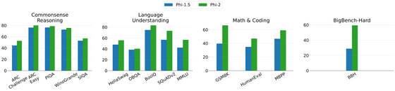 "Phi"는 Microsoft Research의 기계 학습 기반 팀이 개발하는 Transformer 기반 소규모 언어 모델 시리즈입니다. 최초의 모델인 'Phi-1'은 13억 파라미터로 기존의 소규모 언어 모델 중에서 파이썬 코딩에서 최첨단 성능을 달성했습니다. Phi-1을 기점으로 일반적인 추론과 언어 이해 능력을 향상한 모델이 「Phi-1.5」로, 파라미터 수가 13억으로 작지만 5배 큰 모델과 동등한 퍼포먼스를 발휘하고 있습니다.