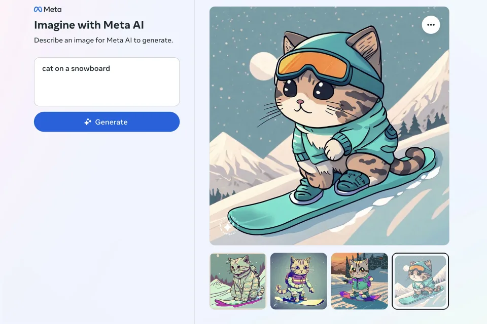 Meta가 이미지 생성 AI 'Imagine'을 무료로 사용할 수 있는 웹 앱 「Imagine With Meta AI」를 공개했습니다. Imagine With Meta AI는 무료로 이용 가능하며, 문장(프롬프트)을 입력하는 것만으로 이미지를 4장 생성할 수 있다는 것.