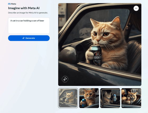 해외 미디어 Ars Technica가 Imagine With Meta AI에서의 이미지 생성 결과를 공개하고 있으므로, 일부를 픽업해 보았습니다. "A cat in a car holding a can of beer(맥주 캔을 가진 고양이가 차 안에 있다)"라는 프롬프트로 생성한 이미지가 이하. 프롬프트를 따라 높은 품질의 이미지를 생성할 수 있습니다. 그러나 좌석의 각도 및 도어미러 각도 등에서 약간의 위화감이 존재합니다.