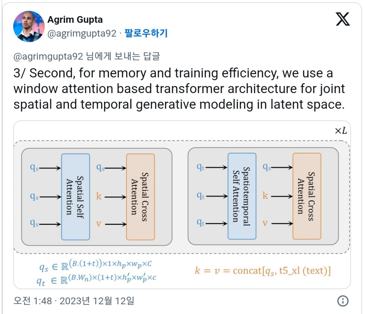 「WALT」는, Google 등이 발표한 심층 학습 모델인 Transformer를 베이스로 한 동영상 생성 AI입니다. 연구팀의 아그림 굽타 씨는, WALT의 구조를 X(구 Twitter)에 포스팅하고 있습니다.