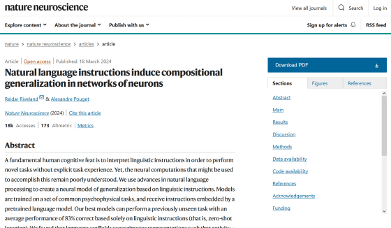 연구팀이 개발한 RNN은 내장 언어 모델인 SBert를 통해 텍스트를 완전히 이해할 수 있었습니다. RNN은 지금까지 교육 영상을 보거나 과제를 실행한 경험이 없었음에도 불구하고, 자연언어에 의한 지시만으로 "자극이 주어진 방향을 가리킨다", "대비에 차이가 있는 두 가지 시각적 자극 중 밝은 쪽을 가리킨다"라는 태스크를, 평균 83%의 정밀도로 실행할 수 있었다고 보고하고 있습니다.