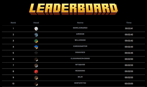 덧붙여 마인 솔트에서는 게임 클리어에 걸린 시간이 측정되고 있어, Top 24에 들어간 플레이어에게는 상품이 주어집니다. 공식 사이트상에 클리어 타임의 리더 보드가 게재되고 있어, 현재 가장 빠른 타임은 「 2분 41초」 로, 클리어 타임이 3분 18초를 끊으면 Top 24 안에 랭크인 할 수 있는 상황입니다.