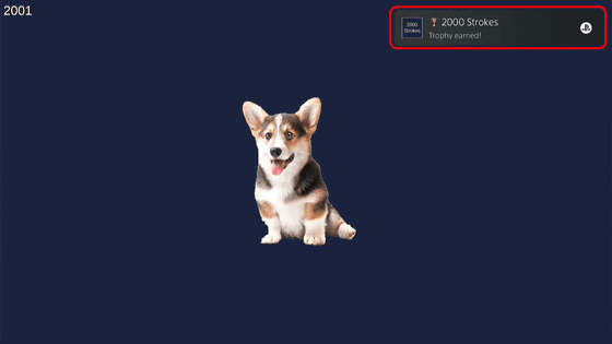 ✕ 버튼을 누르면 개가 깜박입니다. 그러면 ✕ 버튼을 누른 횟수만큼 왼쪽 상단의 숫자가 증가합니다. Stroke(쓰다듬다)라는 것이므로, 아마도 개가 점멸하는 것으로 개를 쓰다듬은 것을 나타내고 있는 모양. 그러나 개는 단지 정지 영상에서 깜박일 뿐, 별다른 움직이도 없습니다.