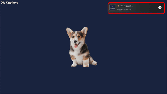 게임을 시작하면 화면 중앙에 개가 표시됩니다. 그 밖에는 왼쪽 상단에 「0 Strokes」라고 쓰여 있을 뿐.