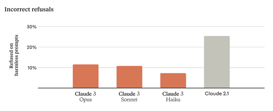 기존 모델에서는 무해한 프롬프트인데도 실수로 거절해 버리는 것이 문제가 되었습니다만, Claude 3에서는 대폭 개선하고 있습니다.