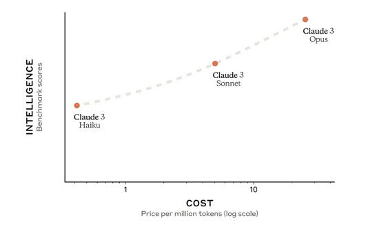 Claude 3의 모델은 저렴하고 비용 효율적인 "Haiku", 비용과 성능을 균형 잡힌 "Sonnet", 그리고 고가의 고성능 "Opus"라는 세 가지 변형으로 나뉩니다.
