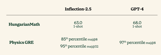Inflection-2.5는 AI의 수적 처리 능력을 추측하는 데 사용되는 헝가리의 수학 시험(Hungarian Math)이나 북미에서 사용되는 공통 시험 'GRE'의 물리학 문제(Physics GRE)등 STEM 분야에서도 강점을 보여주고 있습니다.