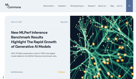 신경망의 성능 평가를 실시하는 업계 컨소시엄의 MLCommons는 다양한 시나리오에서 하드웨어의 AI 처리 성능을 측정할 수 있는 벤치마크 테스트 'MLPerf Inference'를 설계하고 있습니다. 최신 「MLPerf Inference v4.0」 에서는 퍼포먼스 지표로서 새롭게 Meta의 대규모 언어 모델 「Llama 2 70B」 와 이미지 생성 AI인 「Stable Diffusion XL」이 추가되었습니다.