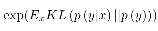 이것은 이미지 분류 모델에 생성 이미지를 입력했을 때, 높은 확률로 클래스 i라고 예측되면, 생성 이미지가 실제 이미지와 비슷하다고 할 수 있습니다. 이것은 p(y|x)로 측정이 가능합니다.