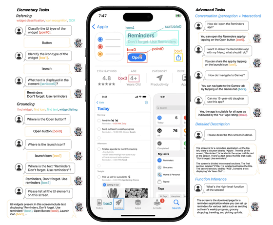 Apple의 연구원이 스마트폰 앱의 UI를 이해하기 위해 설계한 멀티모달 대규모 언어 모델(MLLM)인 「Ferret-UI」 를 개발했다는 논문을 출판 전 논문 리포지토리인 arXiv에 공개했습니다.