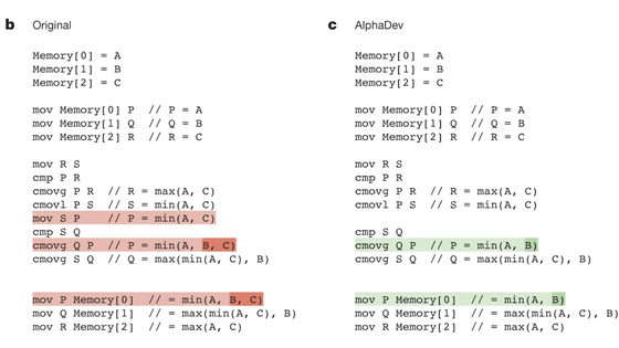 AlphaGo를 개발한 것으로 유명한 Google DeepMind가 심층 강화 학습을 응용해 다양한 컴퓨팅 알고리즘을 개선하는 AI 「AlphaDev」를 발표했습니다. 또한, 이 AlphaDev를 이용하여 정렬 알고리즘을 가속화할