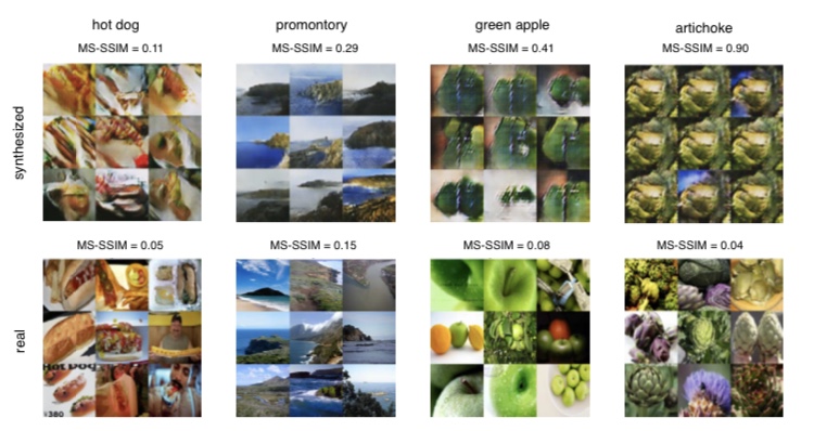 MS-SSIM의 값이 작을수록 이미지 사이의 유사성이 작고, 생성한 이미지에 다양성이 존재한다는 것을 보여줍니다.