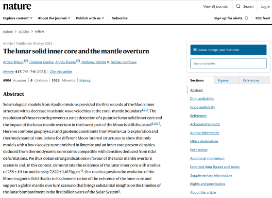 달은 매우 친숙한 천체입니다만, 그 조성이나 환경 등은 불명확합니다. 프랑스 국립과학연구센터(CNRS)를 중심으로 한 연구팀이 2023년 5월 발표한 연구논문에서는 달에 '금속으로 구성된 고체의 핵'이 존재한다고 밝혔습니다.