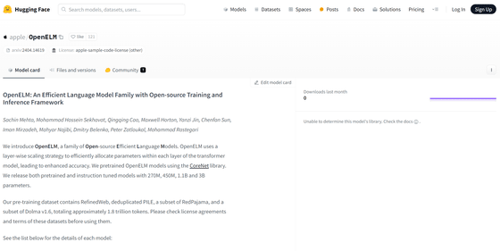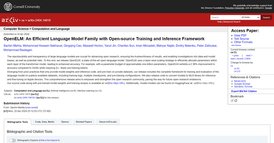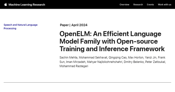 Apple의 연구팀이 오픈 소스 언어 모델인 OpenELM(Open-source Efficient Language Models)을 공개했습니다. 공개된 모델에는 Apple 디바이스에서 동작할 수 있도록 변환하는 코드도 준비되어 있어, 「언어 모델을 Apple 디바이스상에서 로컬로 실행시키기」 가 가능합니다.