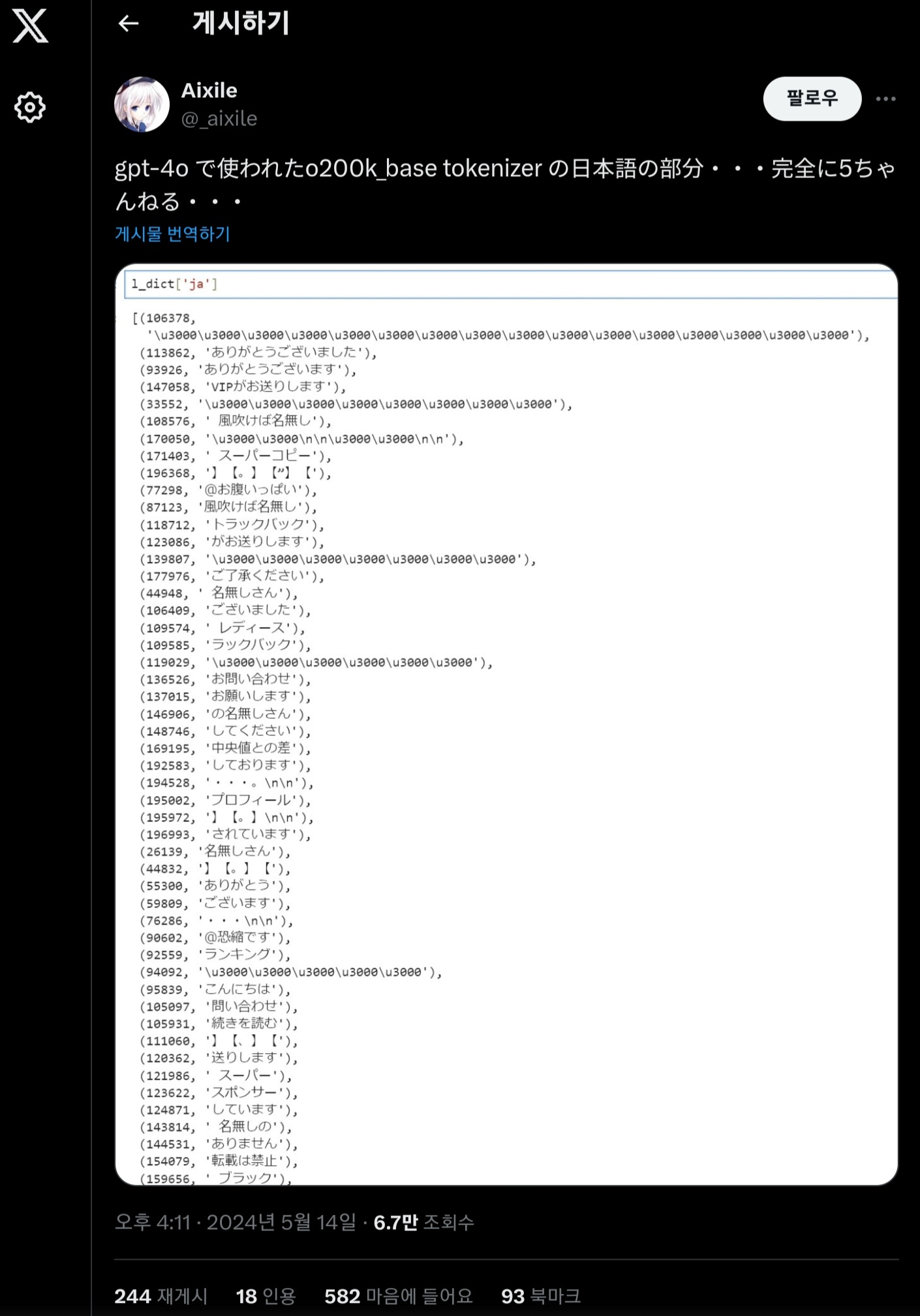 OpenAI의 최신 AI 모델 "GPT-4o"가 발표되었습니다. 텍스트나 음성, 카메라 입력을 인간 수준의 속도로 처리 가능한 높은 성능으로 보도되고 있습니다만, 한편, 중국어 유저로부터는, 트레이닝에 큰 문제를 안고 있어, 토큰 데이터가 오염되어 있다고 지적했습니다.