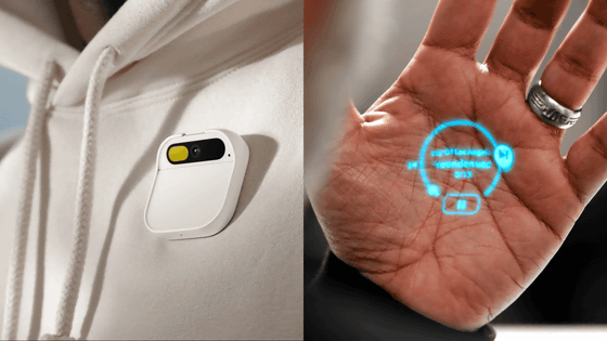 Apple 출신 직원이 설립한 신생 스타트업 Humane에서 만든 "Ai Pin"은 이름대로 클립과 자석으로 가슴에 착용하는 웨어러블 디바이스입니다. 디스플레이가 없는 대신 레이저로 손바닥에 영상을 투영하는 것 외에, 마이크를 통한 음성 입력이나 터치패드에 의한 터치 입력, 3D 심도 카메라를 사용한 제스처 입력에 대응하고 있습니다.