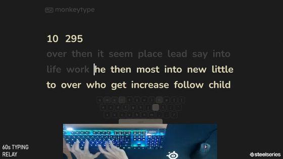 일단 분속 200 단어에 만족해 타이핑에서 멀어진 Rocket이었습니다만, 또 타이핑을 하고 싶다고 생각해 수행을 거듭한 결과, 분속 300 단어를 넘는 레벨이 되었습니다. "매일 15~30분 정도 Monkeytype을 해, 오로지 전력으로 타이핑했습니다. 그것을 계속하다 보니 점점 빨라졌습니다. 지금은 60초와 15초간 타이핑에서 세계 기록을 가지고 있습니다."라고 Rocket은 말했습니다.