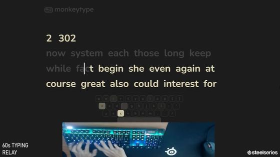 영화나 만화에는 '엄청난 속도로 타이핑하는 해커'가 등장하는 경우가 있습니다만, 현실에도 픽션에 지지 않는 타이핑 속도를 자랑하는 사람들이 있습니다. 온라인 타이핑 사이트인 Monkeytype에서 세계 1위 자리에 군림하는 것은 'MythicalRocket(Rocket)'이라는 닉의 17세 소년으로, 기술계 미디어인 PCMag가 Rocket과 인터뷰한 내용을 공개하고 있습니다.