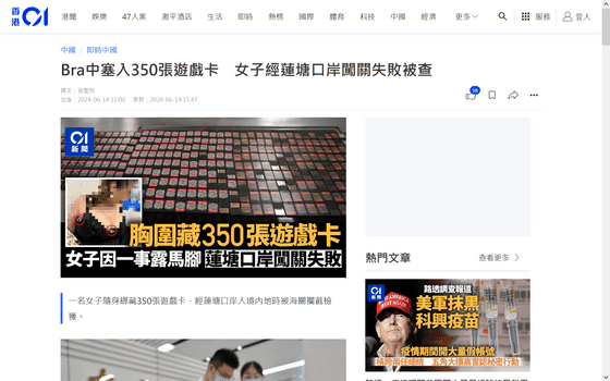 브래지어에 Nintendo Switch의 소프트를 숨겨, 중국 본토에 밀수를 시도한 여성을 요동반도 항구의 세관 직원이 체포했습니다.