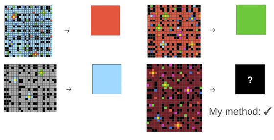 50%의 점수를 내기 위해 실제로 사용한 코드는 GitHub에 공개되어 있습니다. 또한 그린브라트 씨에 따르면 ARC-AGI의 트레이닝용 데이터와 테스트용 데이터는 난이도가 다르고, 트레이닝용 데이터 중에서 일부를 뽑아 테스트에 사용함으로써 72%의 점수를 달성할 수 있었다는 것.