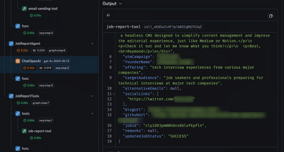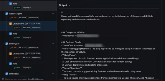 EmailAgent는 WebInfoAgent의 조사 결과를 사용하여 해당 사용자의 작업에 대한 구체적인 세부 사항을 접하는 메일을 작성, 이렇게 하여 신뢰 관계를 구축할 수 있는 개인화된 메일이 작성되었습니다.