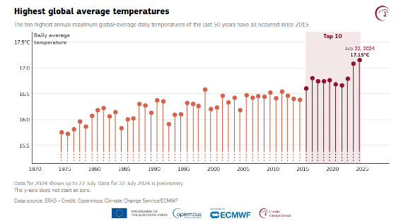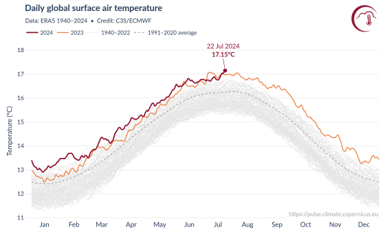 New record daily global average temperature reached in July 2024 | Copernicus