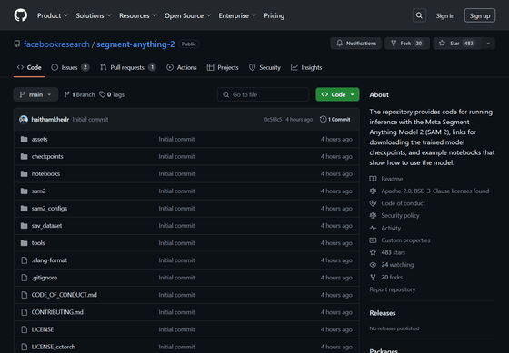 또한 SAM 2는 Apache 2.0 라이센스하에 오픈 소스화되었으며 GitHub에서 공개되었습니다.