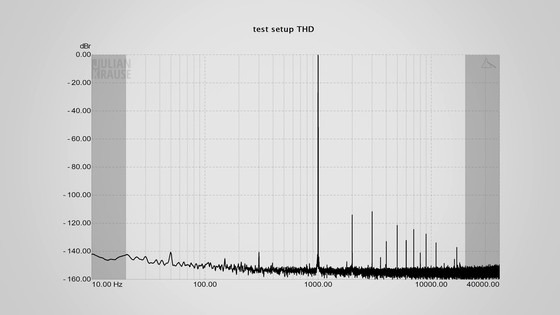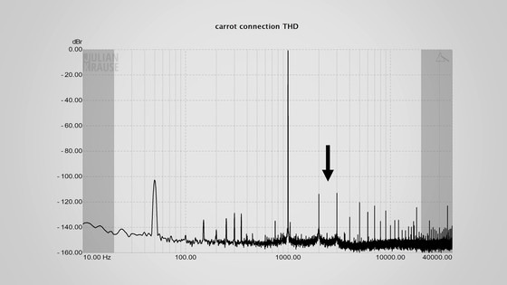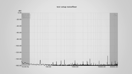 그리고 당근 셋업에서의 노이즈 플로어를 체크하면, 노이즈는 다소 증가하고 있습니다만, 가장 돌출하고 있는 50Hz 부근의 노이즈에서도 -100dBV이므로 거의 들리지 않는 레벨이라고...