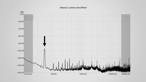 당근에 케이블을 꽂은 경우는, 통상과 비교해 녹음 레벨이 약 4dB 정도 저하되었고, 음질은 약간 고음역이 울리게 된 정도로, 거의 차이가 없었다고 클로제 씨는 인정