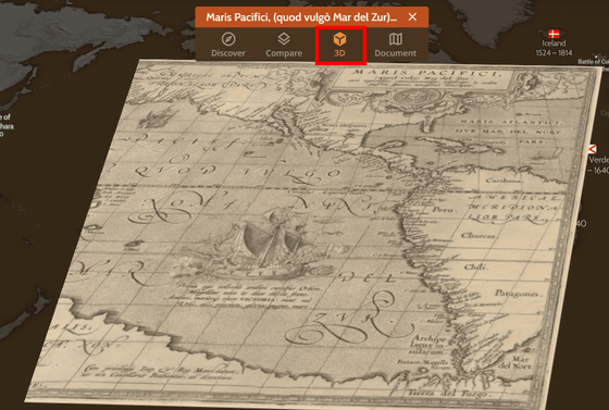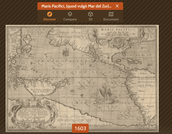 Compare를 클릭하면 Maris Pacifici를 Timemap의 지도와 겹친 비교를 볼 수 있습니다.