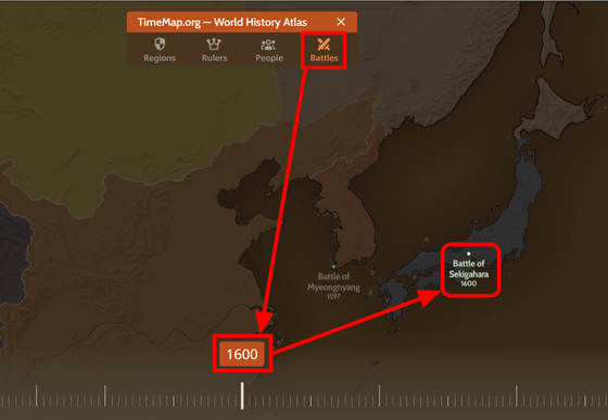 게다가 「Battles」에서는 그 연대 부근에서 발발한 전쟁이나 전쟁을 지도상에서 볼 수 있습니다.