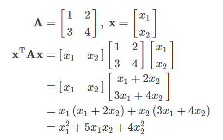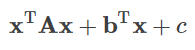 표기할 수 있습니다. 여기에서 A는 2차 항의 계수를 나타내는 크기 (n, n)의 행렬, b는 1차 항의 계수를 나타내는 n 차원의 벡터, c는 스칼라의 정수 부분입니다.